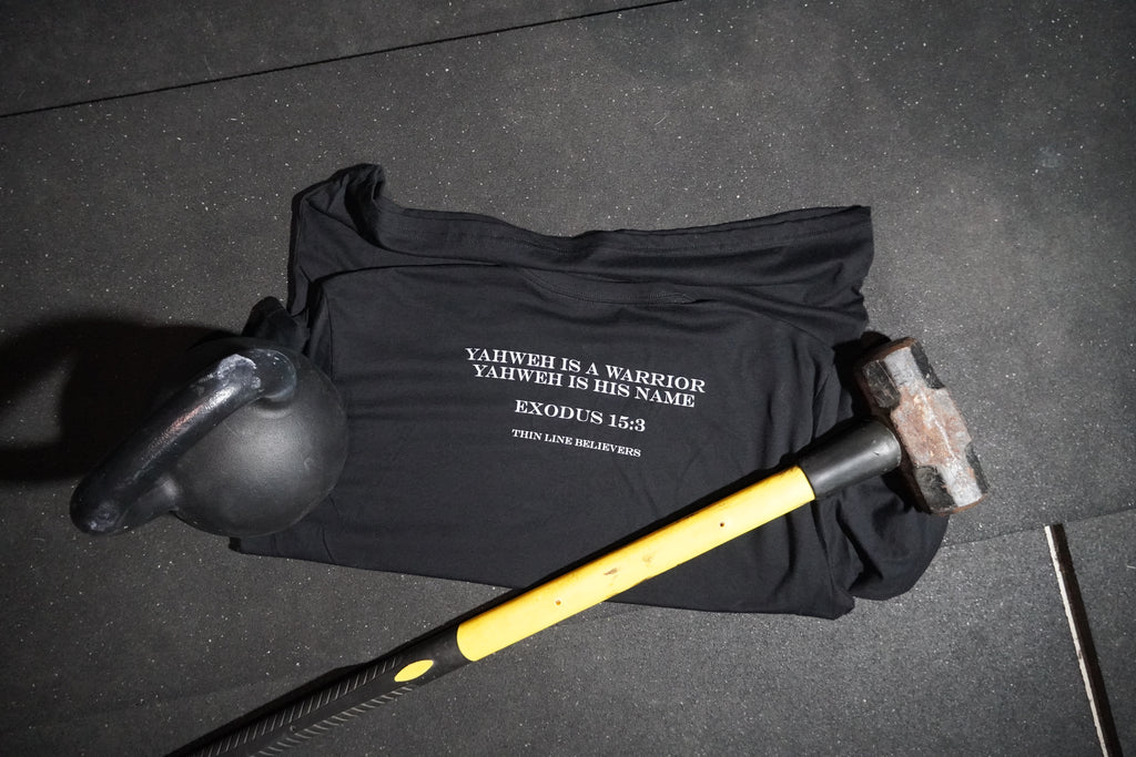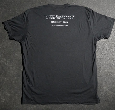 This 60/40 is an athletic fit T-shirt, sporting a verse from Exodus 15:3 which the Israelites sang about God after He freed them from their captivity under the Egyptians. Yahweh is a WARRIOR.